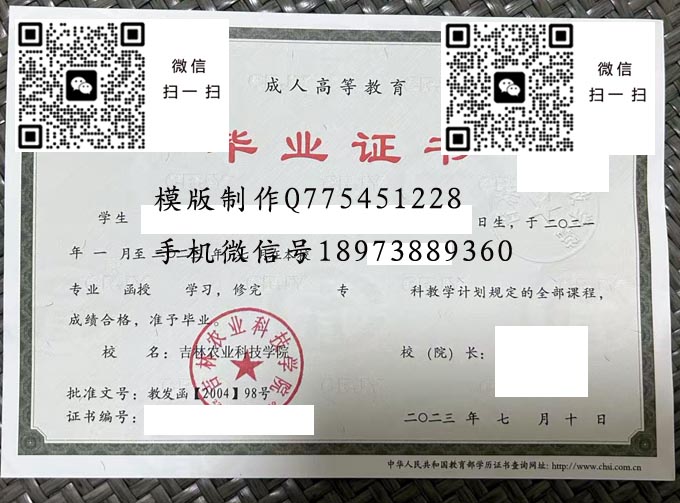 吉林农业科技学院成人毕业证样本