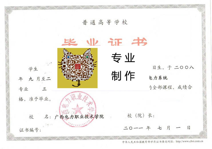 广西电力职业技术学院2011年毕业证样本