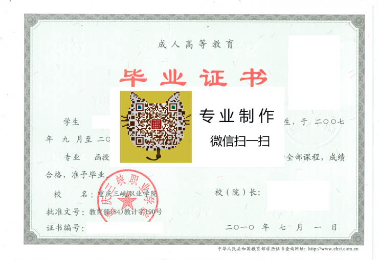 重庆三峡职业学院毕业证编号 (电子注册号)示例 :12605 1 2009 06 006591