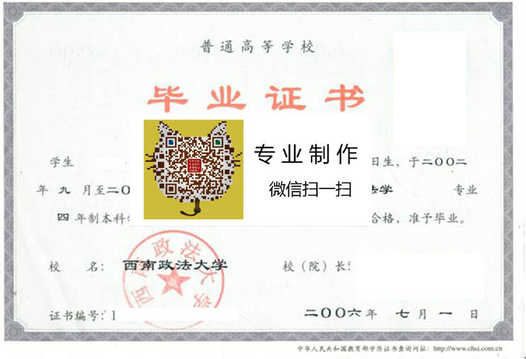 西南政法大学毕业证代码:10652 毕业证编号规律 历任校长样本