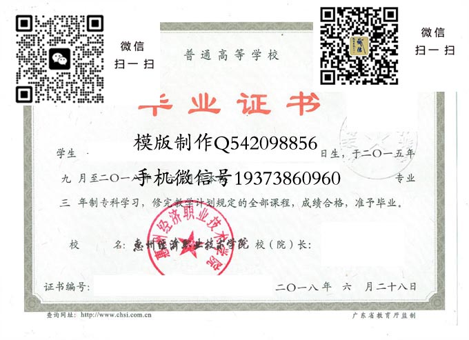 惠州经济职业技术学院毕业证样本(惠州经济职业技术学院2018年全日制模版图片收藏)