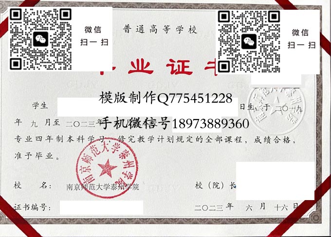南京师范大学泰州学院历年毕业证样本