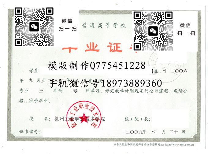 徐州工业职业技术学院历年毕业证样本