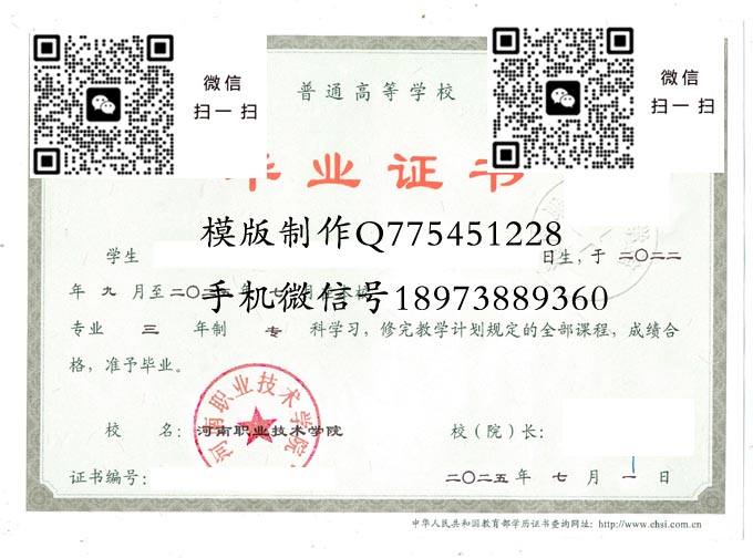 河南职业技术学院毕业证样本(河南职业技术学院2019年全日制模版图片收藏)